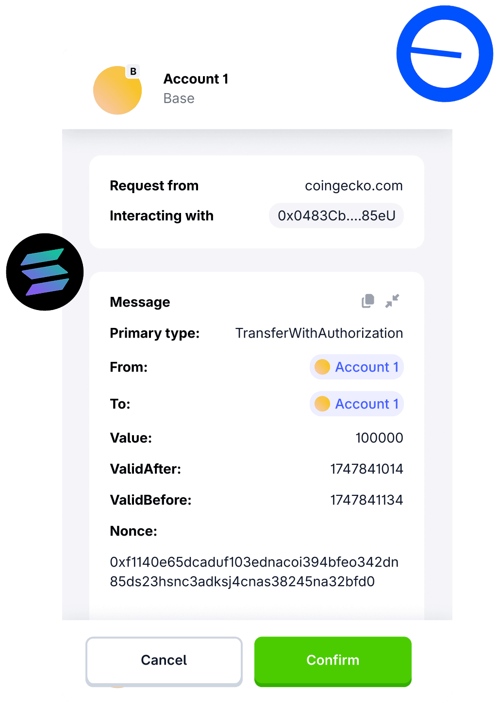 Your wallet signs a USDC authorization and submits the payment signature header. CoinGecko currently support USDC payments on Solana and Base.