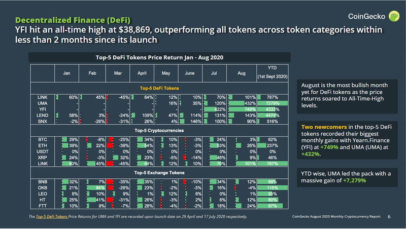 3. YFI hit an all-time high at $38,869, outperforming all cryptocurrencies, including the DeFi tokens within less than 2 months since its launch.