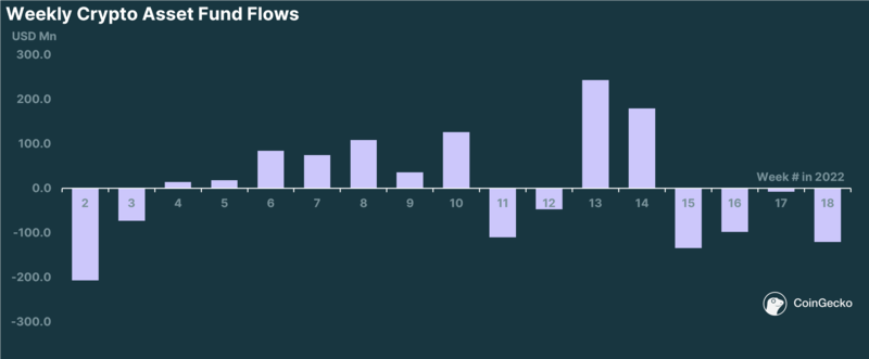 Interestingly, flows on crypto funds have proven to be more “diamond hands”. Up to 28 April 2022, YTD flows have been slightly net positive with +$270M in inflows, albeit against a total AUM of $50.4Bn. This indicates that institutions investing on a more longer-term time horizon via crypto funds may be more immune to short-term price volatility (a good thing!), and have largely hodl-ed throughout this difficult period.
