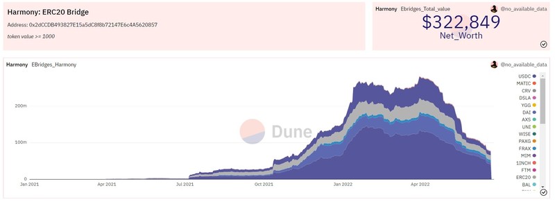 Harmony Horizon ETH Bridge TVL. Source: @no_available_data, Dune Analytics https://dune.com/no_available_data/Ethereum-bridges