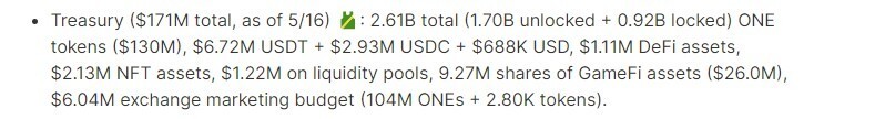 Harmony treasury as of 16th May; now totalling an estimate of a min >$40M if composition remains unchanged. Source: https://open.harmony.one/team-founding-story/may-2022-team-deliverables