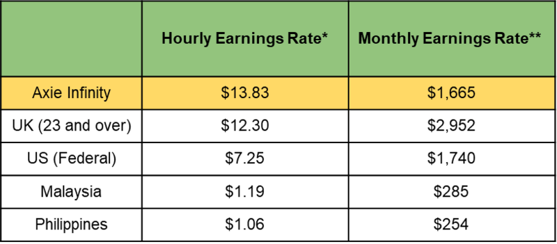 ** Monthly Earnings Rate based on 8-hour shifts except for Axie Infinity which is capped at 20 energy per day