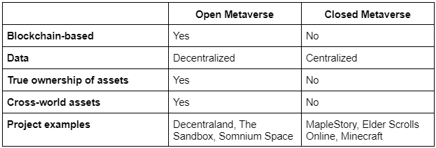 In broad terms, metaverse can be classified as one of two types - open or closed.