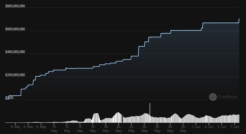 This rise in TVL is no doubt contributed by the growth of USDD whose rise in market share also began roughly two months ago (when it launched May 5th), which makes Tron’s ascension in TVL ranks uncannily reminiscent of Terra's. USDD now has a market cap of ~$700M, slightly over triple from where it was 30 days ago, and is now the 9th largest stablecoin by market cap.