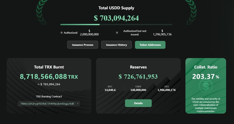 A couple of days ago, Tron published a medium post claiming to now be the ‘first’ over-collateralized stablecoin, spurred by the collapse of UST.  It is purported that USDD now has a collateralization ratio of >200% and a minimum ratio of 130%, supposedly one-upping the gold standard of DAI’s 120% collateralization ratio. However, users should definitely remain cautious and skeptical of these claims.