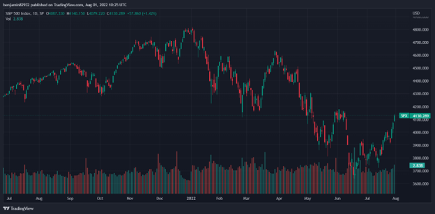 It should be a quiet-ish week for macro; as for the US, there is only the July Nonfarm Payrolls data to watch for on Friday, August 5th, to give us an indication of whether the US labor market remains tight. However, watch for speeches given by Fed officials as the market will look to digest their overall stance and outlook. On the equity market end earnings season continues though most heavy hitters already announced results last week. In other markets, there are expectations that RBA (Royal Bank of Australia) and BoE (Bank of England) will both announce further rate hikes this week to combat inflation.