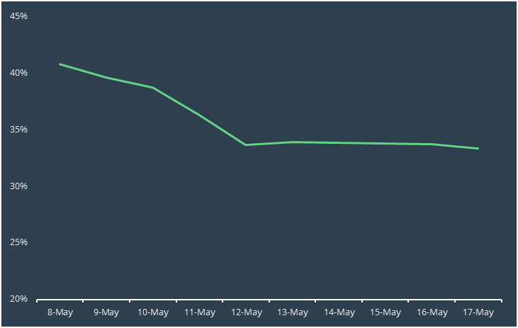 Interestingly, there were large withdrawals of USDC from smart contracts. It fell rather sharply from ~42% to ~33% between 8 May and 12 May. One possibility is that investors were afraid any yield farms they had USDC in could have UST exposure, which of course would have a negative impact on their holdings.