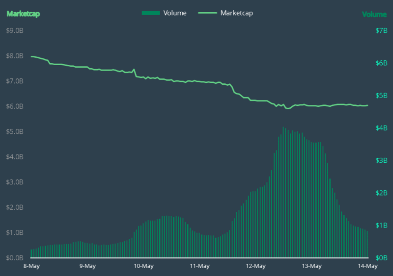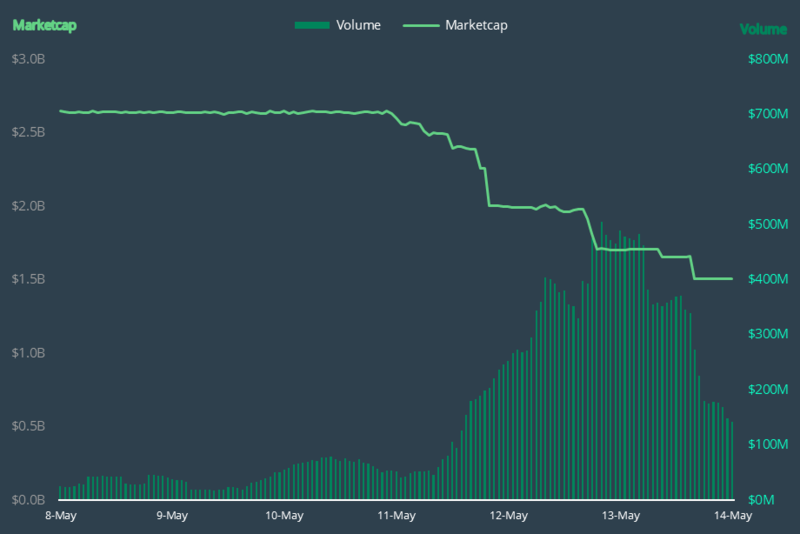 Backed 80% by USDC, FRAX experienced volatility on 12 May with a slew of people swapping between stablecoins. FRAX fell to $0.97 for a bit, but rebounded each time it went off-peg as the built-in redemption mechanism kicked in and arbitrageurs purchased FRAX. Overall, the peg was maintained, but FRAX ended up suffering in terms of marketcap. During the period of 8 May to 13 May, FRAX’s marketcap dropped by ~$1 billion, marking a ~38% decline.