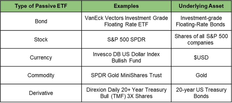 Since passive ETFs are designed to track the value of an underlying asset or index, ETF products can be categorized under different segments. Here are some of the most common categories: